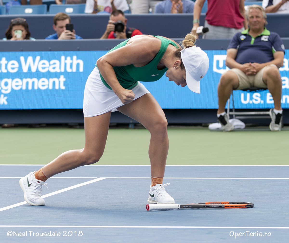 În semifinale, sportiva născută în Constanţa a învins-o pe Aryna Sabalenka (Belarus, 34 WTA) cu 6-3, 6-4. "A fost o provocare pentru mine să am o adversară atât de tânără, care a câştigat meciuri atât de grele înainte, cu o încredere în sine aşa ridicată. A fost o mare provocare. Şi când am păşit pe teren, am spus că tot ceea ce trebuie să fac este să mă relaxez şi să-mi fac jocul, ceea ce am şi făcut", a declarat Halep, după partidă, potrivit wtatennis.com. “A fost foarte bine să joc aici şi acum a fost un meci dur. La al doilea smash pe care ea l-a ratat de puţin, cineva mi-a spus: «Simona, ai noroc». Aşa că a fost noroc. Mă bucur că voi juca o altă finală în două săptămâni", a mai spus ea, după care a completat: "Serveşte puternic şi mă uitam după fiecare serviciu să văd viteza şi era 111-115 mile pe oră, aşa că fiecare serviciu era foarte greu de returnat, dar am fost destul de puternică pe poziţii, am vrut doar să mă mişc cât mai mult posibil şi să mă deplasez mai mult spre stânga. Am făcut tot ce am putut şi cred că am câştigat pentru că am luptat până la final".