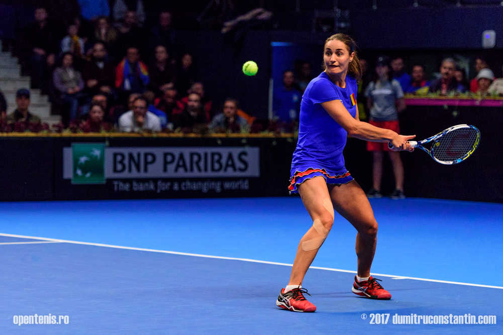 Ele le-au învins cu 4-6, 6-2, 6-0 pe americancele Jennifer Brady şi Vania King. Româncele s-au impus în după două ore şi 12 minute. Ele au condus în primul set cu 2-0 şi 4-1, dar în acel moment adversarele au câştigat cinci gameuri la rând. În setul secund, Irina-Camelia şi Monica au realizat două break-uri, în primul game şi la 4-2, iar în decisiv nu au avut niciun fel de probleme, Brady şi King trecându-şi în cont doar nouă puncte.