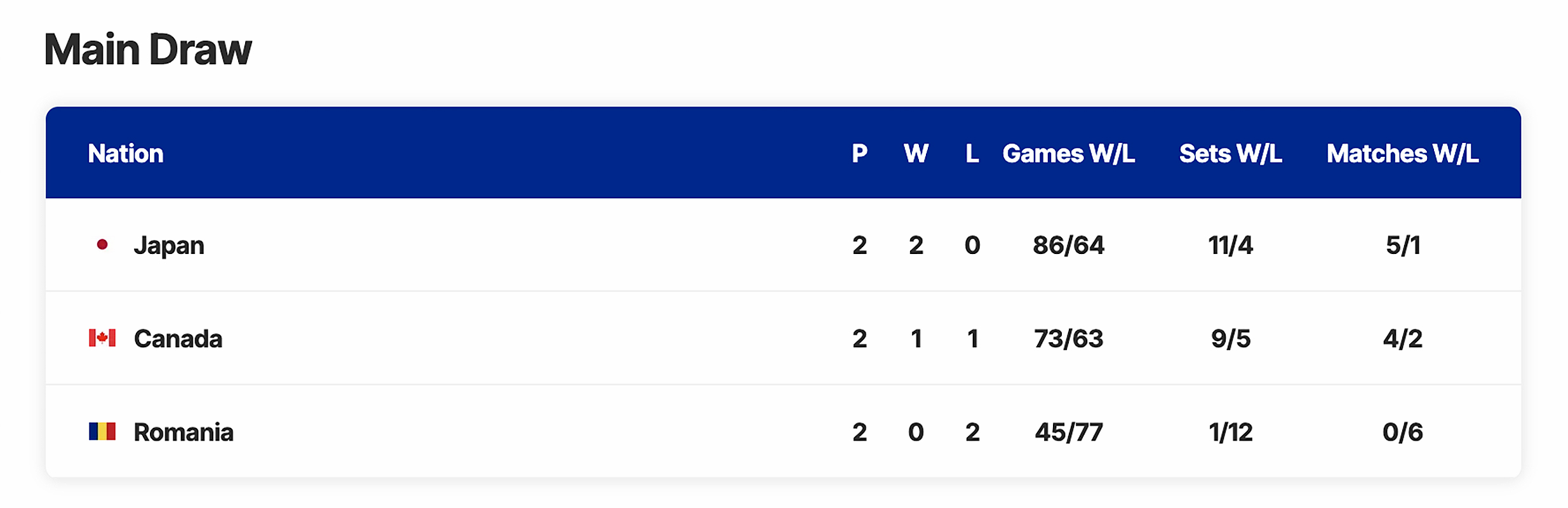 Japonia 2/0 Canada 1/1 România 0/2