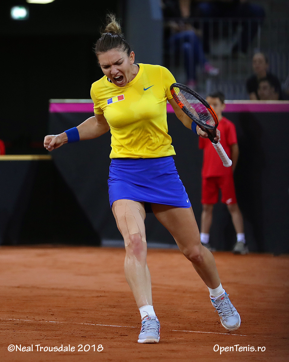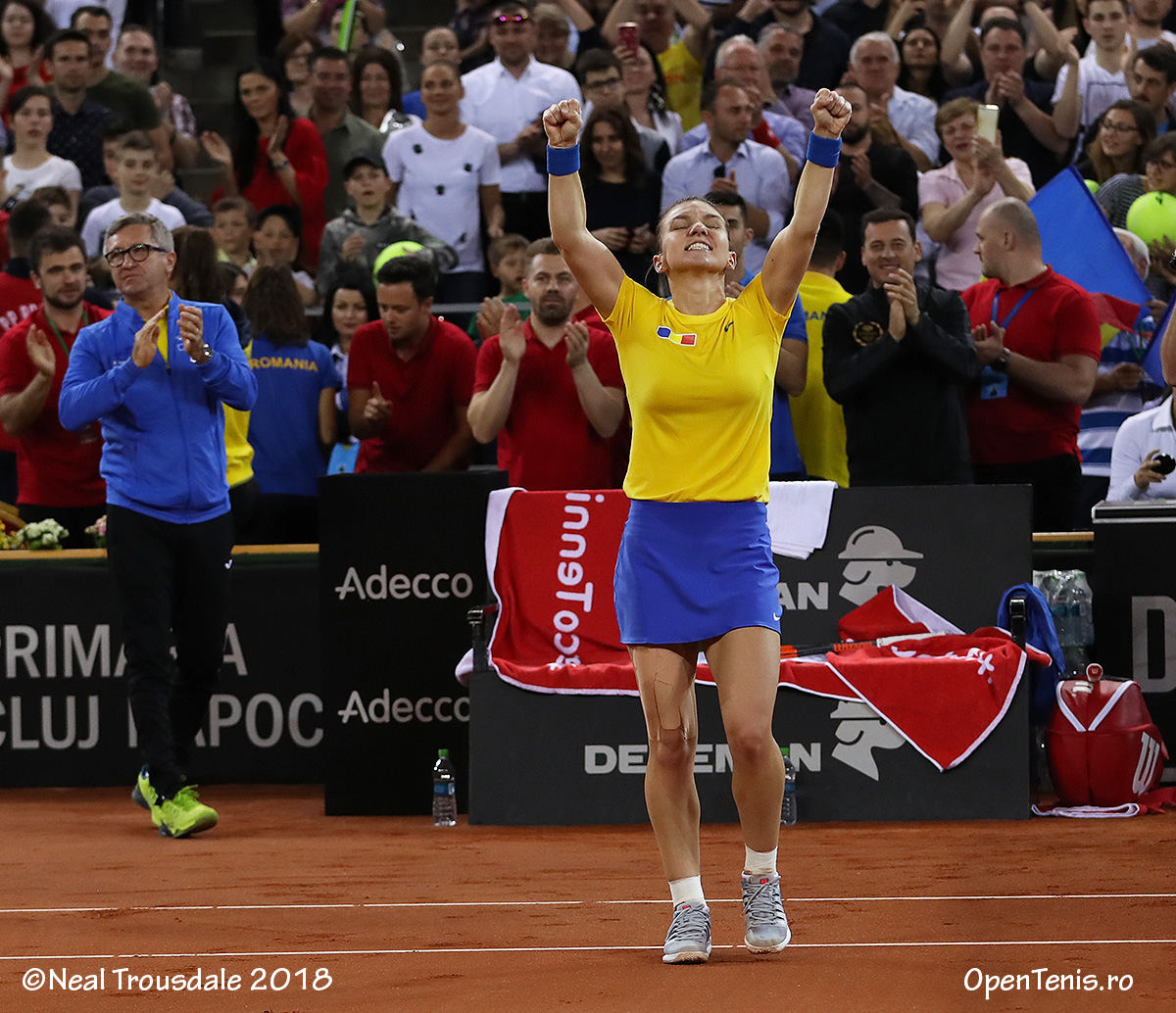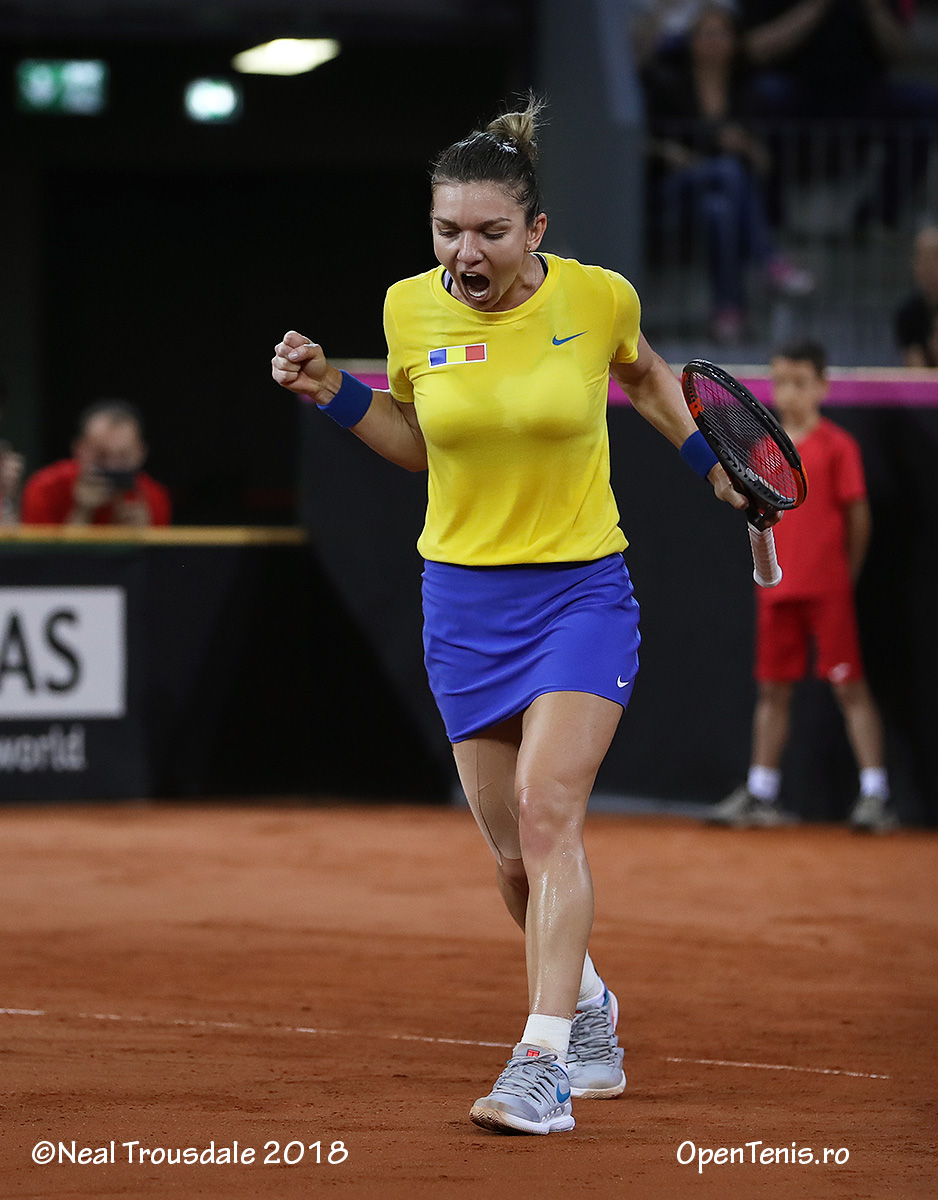 Simona Halep (1 WTA) a adus calificarea echipei de Fed Cup a României în Grupa Mondială, după victoria decisivă în barajul cu Elveţia, găzduit de Sala Polivalentă din Cluj-Napoca. Ea a învins-o cu 6-2, 6-1 pe Patty Schnyder (149 WTA), care a înlocuit-o pe Timea Bacsinzky (46 WTA). Cea mai bună performanţă a României în Fed Cup este o semifinală în 1973. Echipa ţării noastre s-a mai calificat de asemenea de 4 ori în sferturi (1974, 1978, 1980 şi 1981). În total, tricolorele au participat de 12 ori în Grupa Mondială.