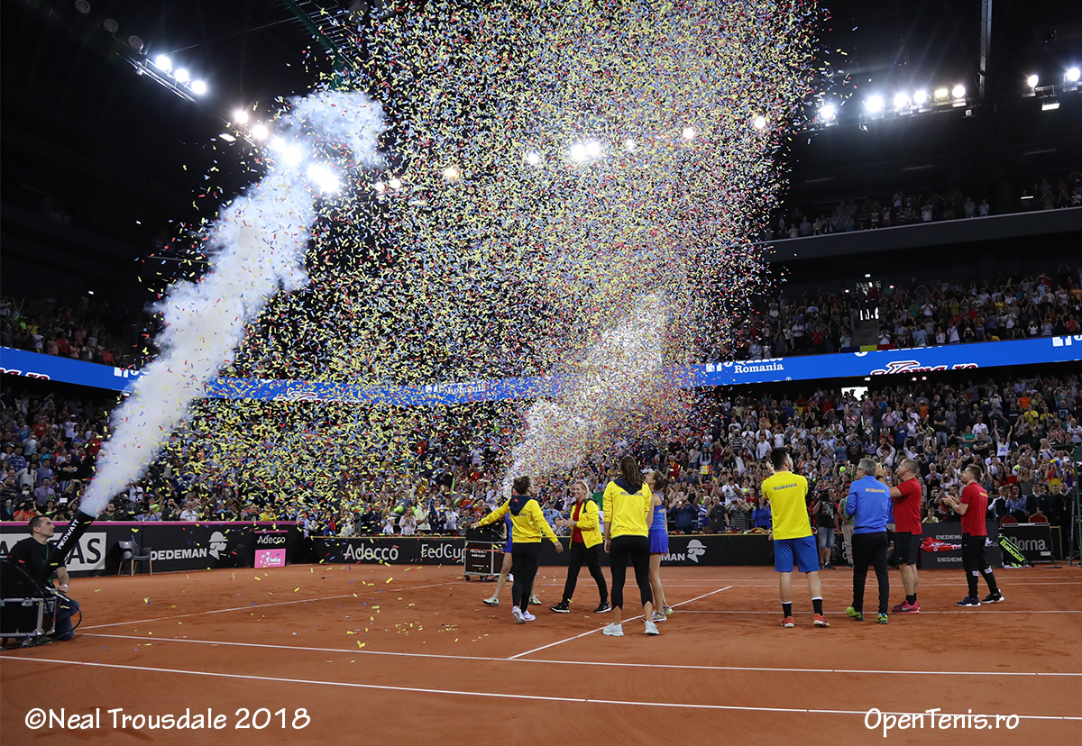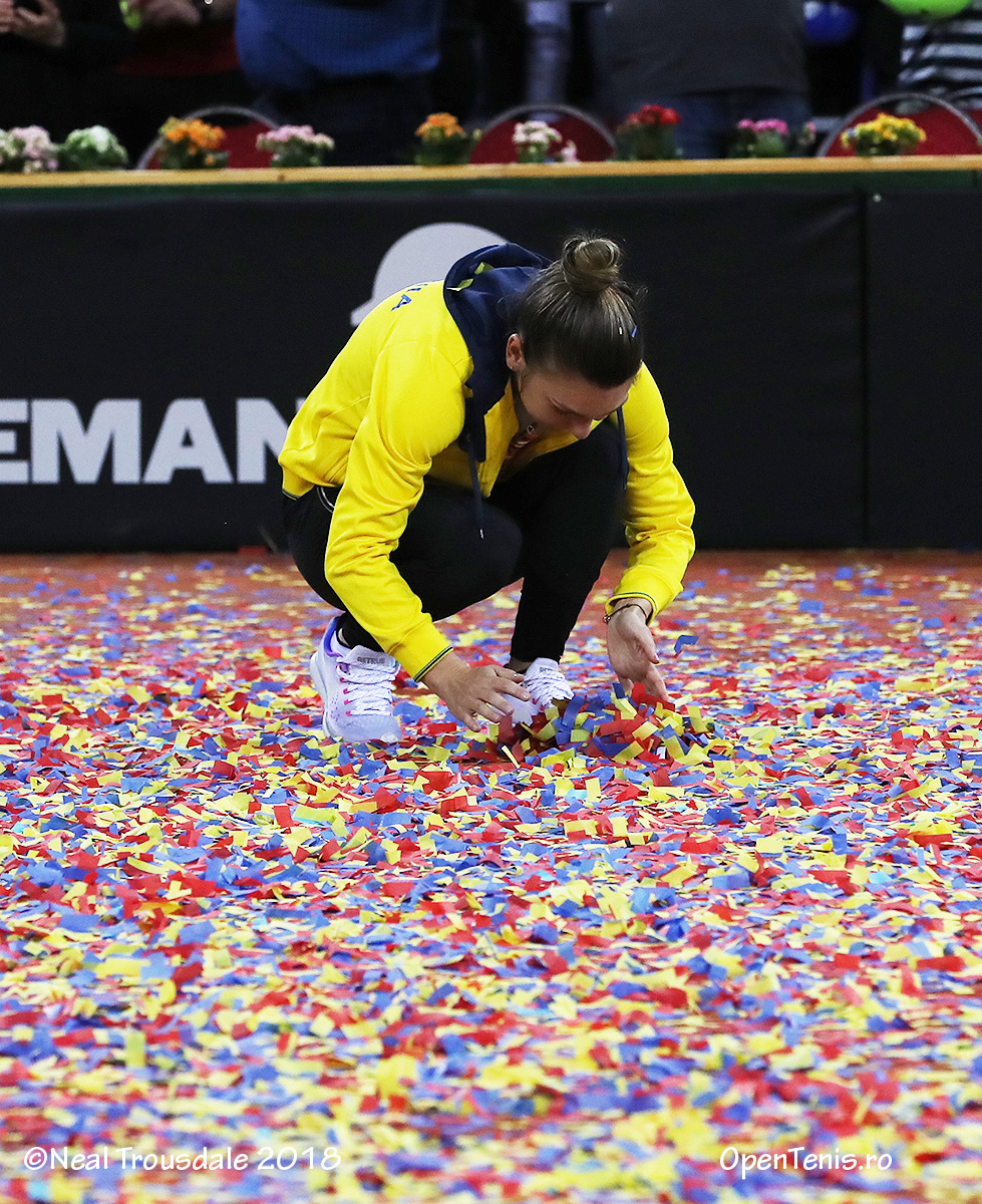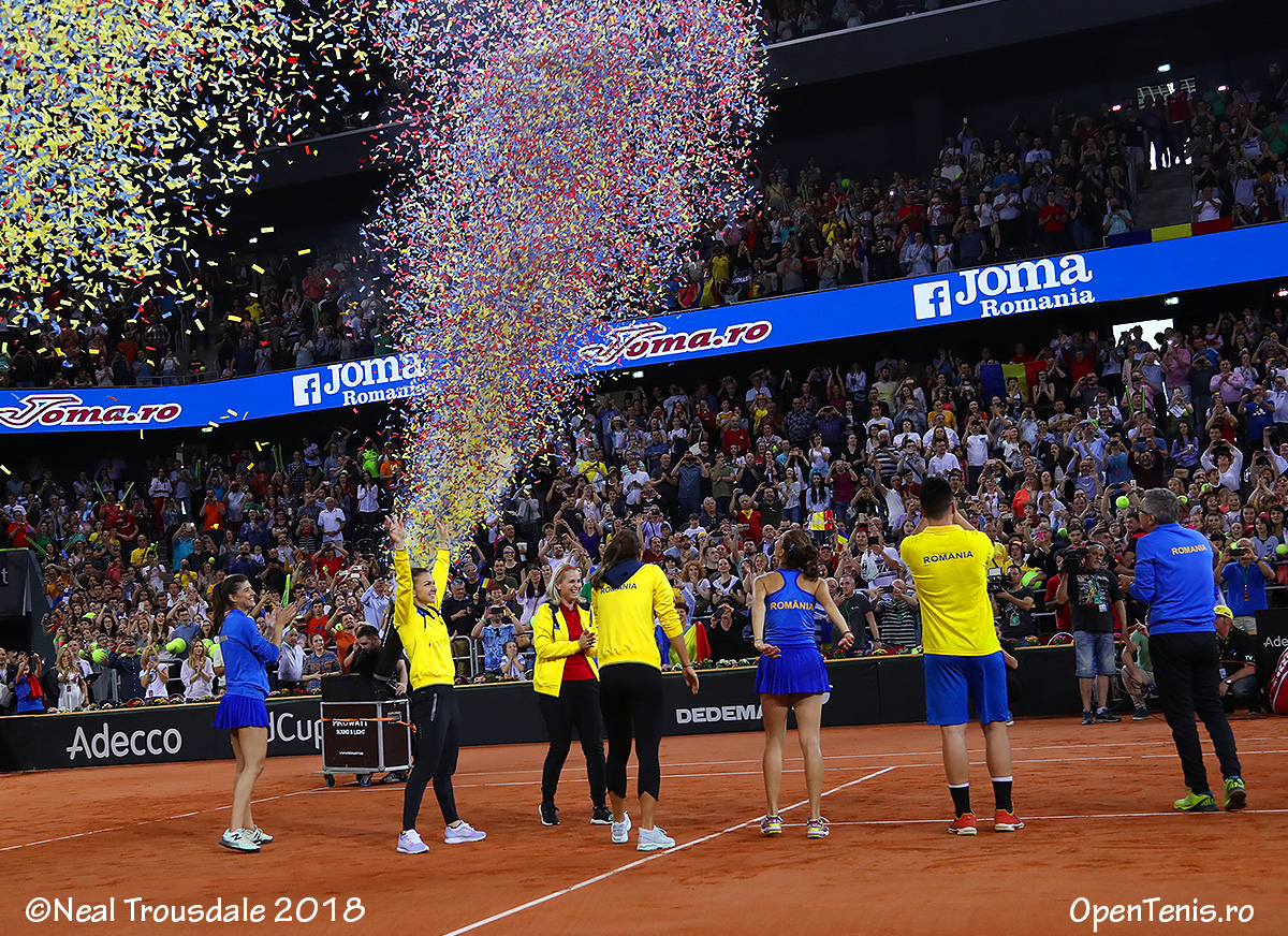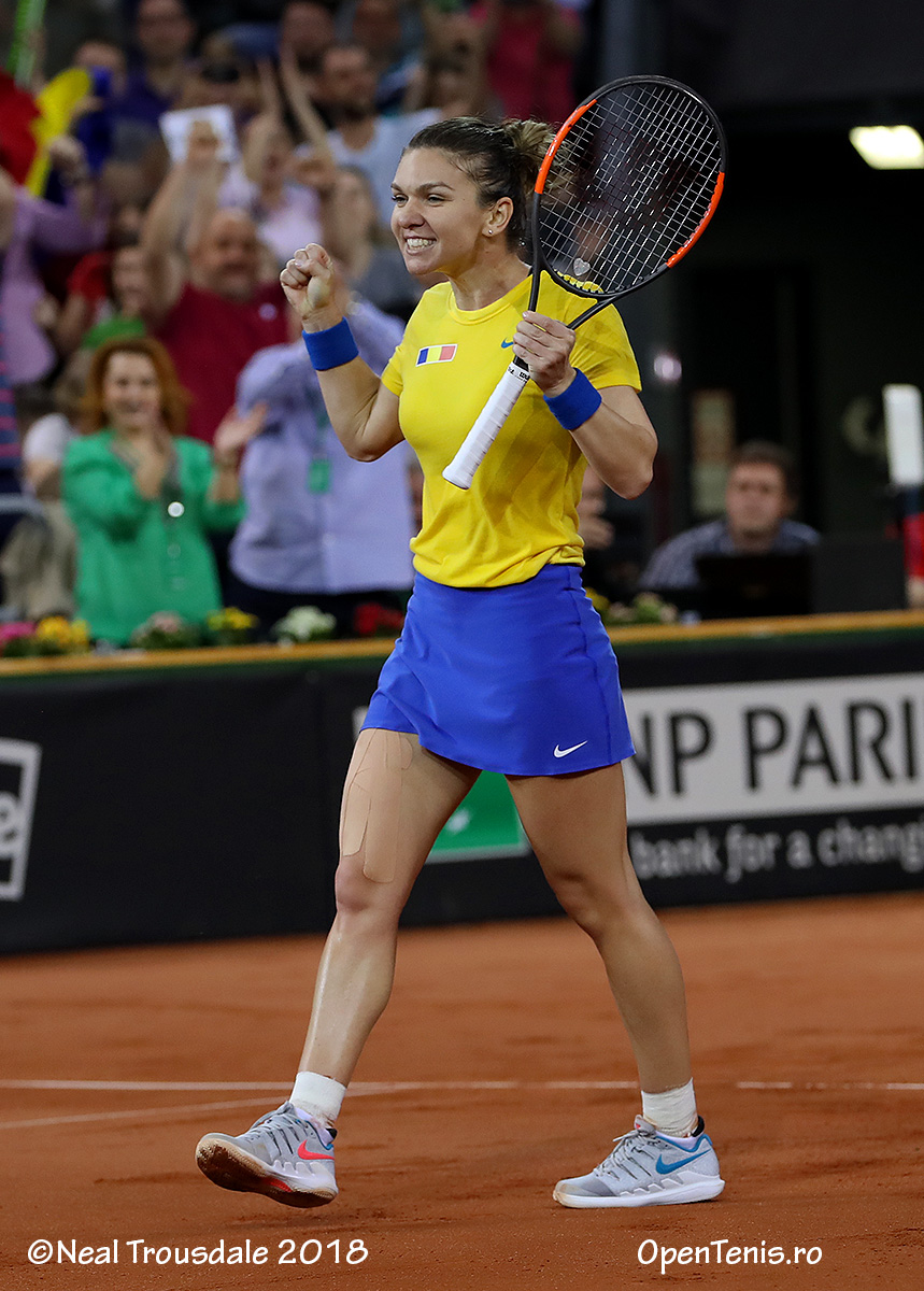 Simona Halep (1 WTA) a adus calificarea echipei de Fed Cup a României în Grupa Mondială, după victoria decisivă în barajul cu Elveţia, găzduit de Sala Polivalentă din Cluj-Napoca. Ea a învins-o cu 6-2, 6-1 pe Patty Schnyder (149 WTA), care a înlocuit-o pe Timea Bacsinzky (46 WTA). Cea mai bună performanţă a României în Fed Cup este o semifinală în 1973. Echipa ţării noastre s-a mai calificat de asemenea de 4 ori în sferturi (1974, 1978, 1980 şi 1981). În total, tricolorele au participat de 12 ori în Grupa Mondială.