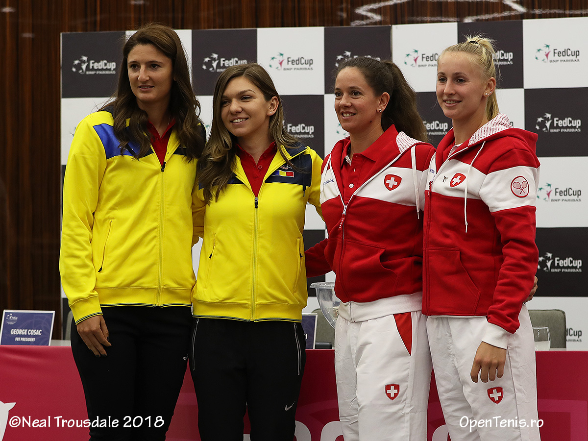 În confruntările directe dintre Halep şi Bacsinzky, liderul mondial conduce cu 3-1, ultima înfruntare fiind câştigată în 2016 în 16-imi la Madrid de româncă cu 6-2, 6-3. Begu şi Golubic au disputat un singur meci la simplu până acum, câştigat de Irina cu 6-2, 7-6 (6), în sferturi la Budapesta în 2008. Duminică, Simona Halep o va întâlni pe Timea Bacsinzky în prima partidă de simplu, iar Begu va juca cu Viktorija Golubic în a doua partidă de simplu.