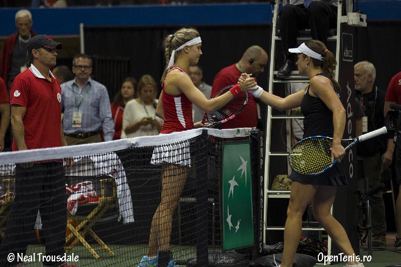 Alexandra Dulgheru s-a impus cu un dublu 6/4 in fata celei mai valoroase jucatoare a Canadei, Eugenie Bouchard, restabilind astfel egalitatea la general (1-1).
