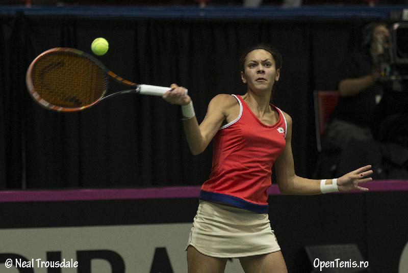 Intr-un meci fara miza, Romania invingand deja Canada, echipa formata din G. DABROWSKI si S. FICHMAN s-a impus cu 6/1, 4/6, 10-5 in fata echipei romanesti formate din Andreea MITU si Raluca OLARU.