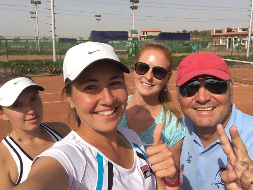 1. Irina (a doua din stânga), alături de Anna Slovakova, Barbora Božková (antrenoarea Annei) şi tatăl ei, Adrian Fetecău