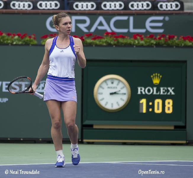 Simona Halep (favorita 3) a avut nevoie de 1 ora 54 de minute pentru a trece de favorita 12, Carla Suarez-Navarro, si a-si asigura astfel un loc in semifinale la BNP Paribas Open.