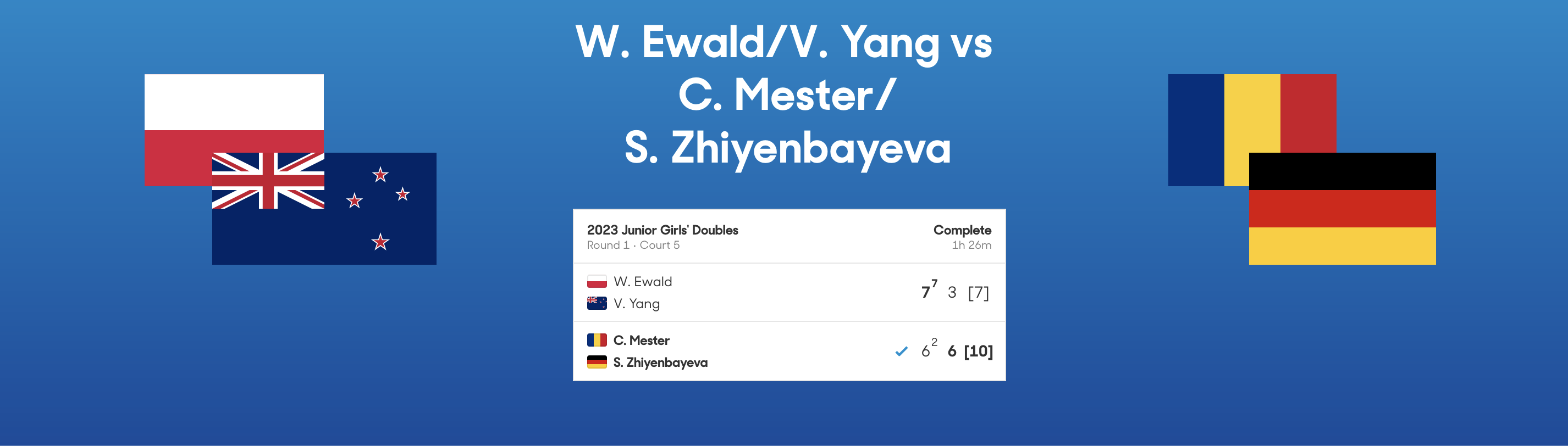Curtea 5: Weronika Ewald/Vivian Yang 7/6 3/6 7/10 vs Cara Maria Mester/Sonja Zhiyenbayeva